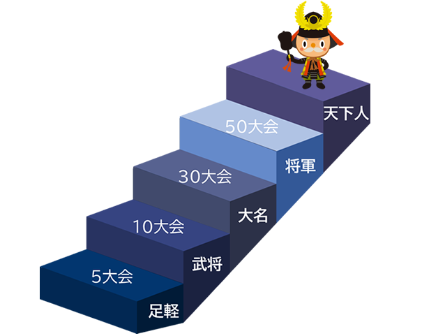 「完走タイム入り御城印」を一定数集めると、RUNNETのMyページ内に表示される「階級」が上がっていきます。また、年間で3大会を完走すると「侍ランナー」の称号が与えられます。多くの大会を完走して立身出世を目指しましょう!