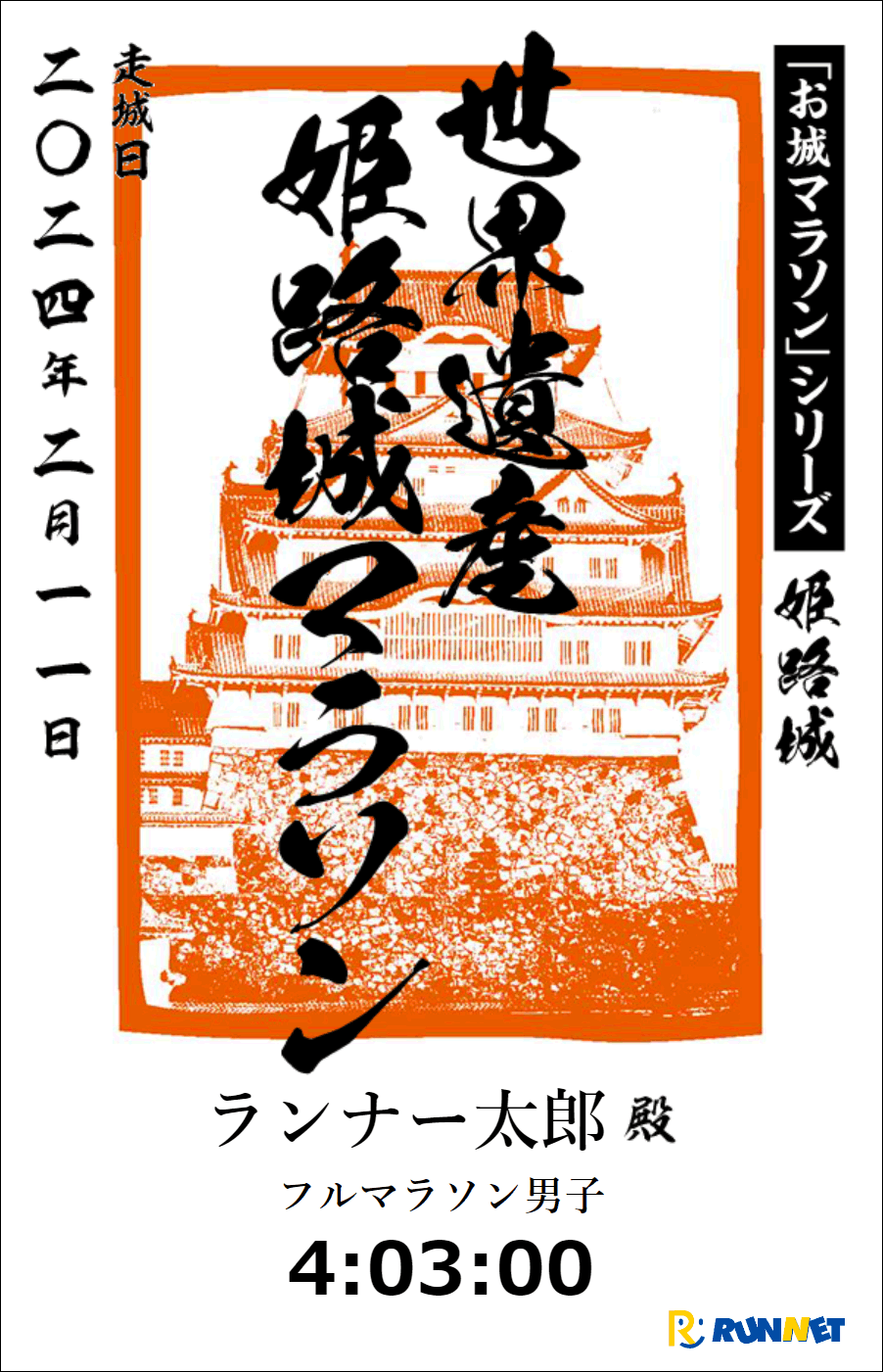 お城マラソン(正式名称:日本全国お城マラソンを走ろう)とは、全国各地で開催されるマラソン・ランニング大会を、その地域に存在する「お城」に見立てて登城(完走=走城)を目指すイベントです。大会を完走するとデジタルの「完走タイム入り御城印」が授与され、御城印を集めるにつれてイベント内の「階級」が上がっていきます。