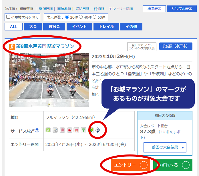 ※お城マラソン対象大会一覧は公式サイトでも確認できます