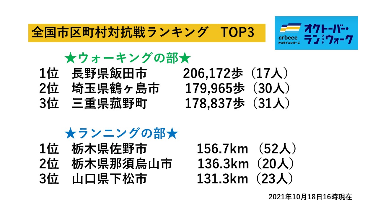 10月18日(月)16時時点での全国市区町村対抗ランキングをここでご紹介!