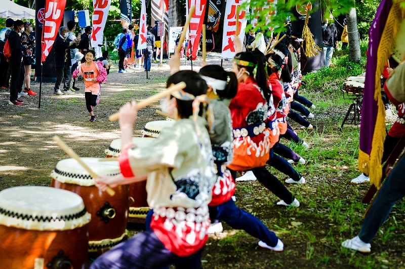 当日、会場では1615年(慶長20年)「大坂夏の陣」において真田信繁(幸村)が、自分の部隊を赤や朱色で整えたという「赤備え」エピソードにちなんだ赤のオリジナルTシャツの販売、和太鼓に送られてのスタート、など、真田気分も高まる演出もたっぷり。