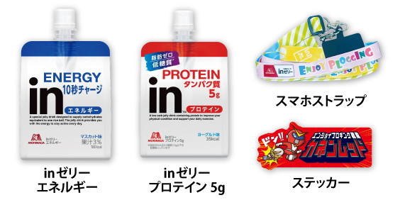 ご参加いただいた方には、inゼリー2種とスマホストラップ、オリジナルハイチュウ、ステッカーをプレゼント!