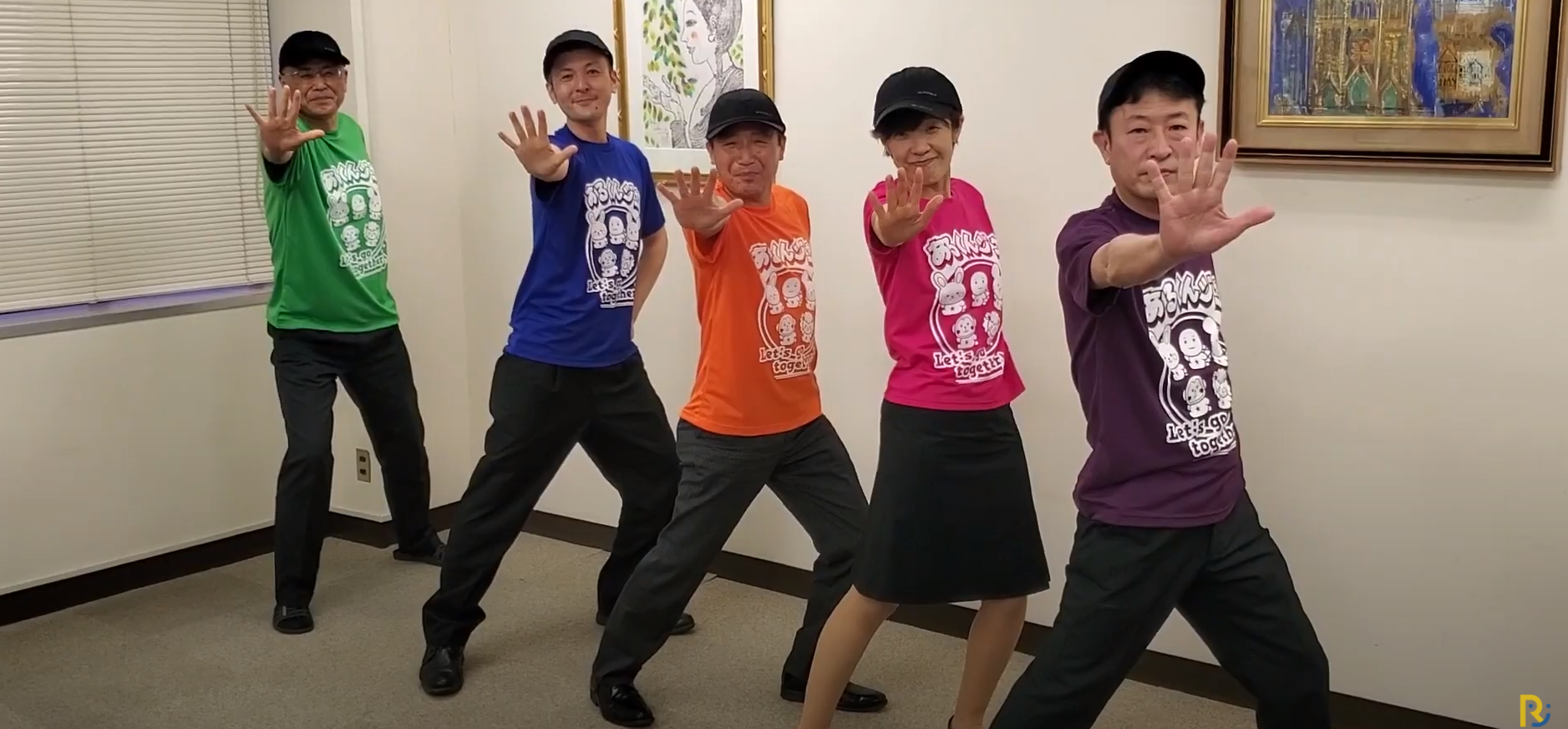 オリジナルの「あるくんジャーTシャツ」を作成するなど気合十分の静清保険代弁株式会社の皆さん。緑のTシャツが最年長の亀山さん