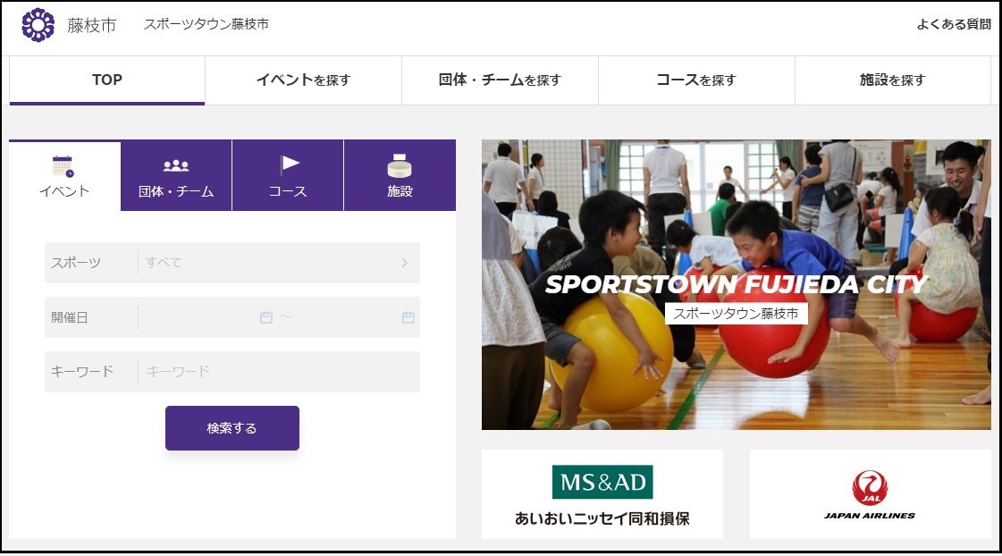 サイトには、市内のスポーツイベント情報が掲載され、検索から申込まで一元化!