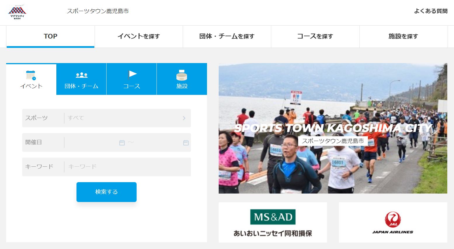 鹿児島市のスポーツ情報を集約したサイト「スポーツタウン鹿児島市」が公開されました。市内の「イベント」「施設」「コース」「チーム」などの情報を閲覧・検索できます。