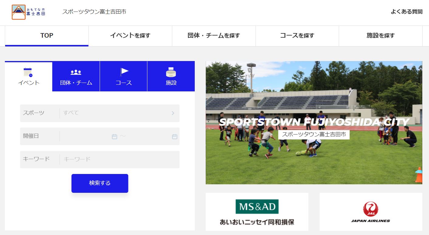 山梨県富士吉田市内のスポーツ情報を集約したサイト「スポーツタウン富士吉田市」が公開されました。市内の「イベント」「施設」「コース」「チーム」などの情報を閲覧・検索できます。