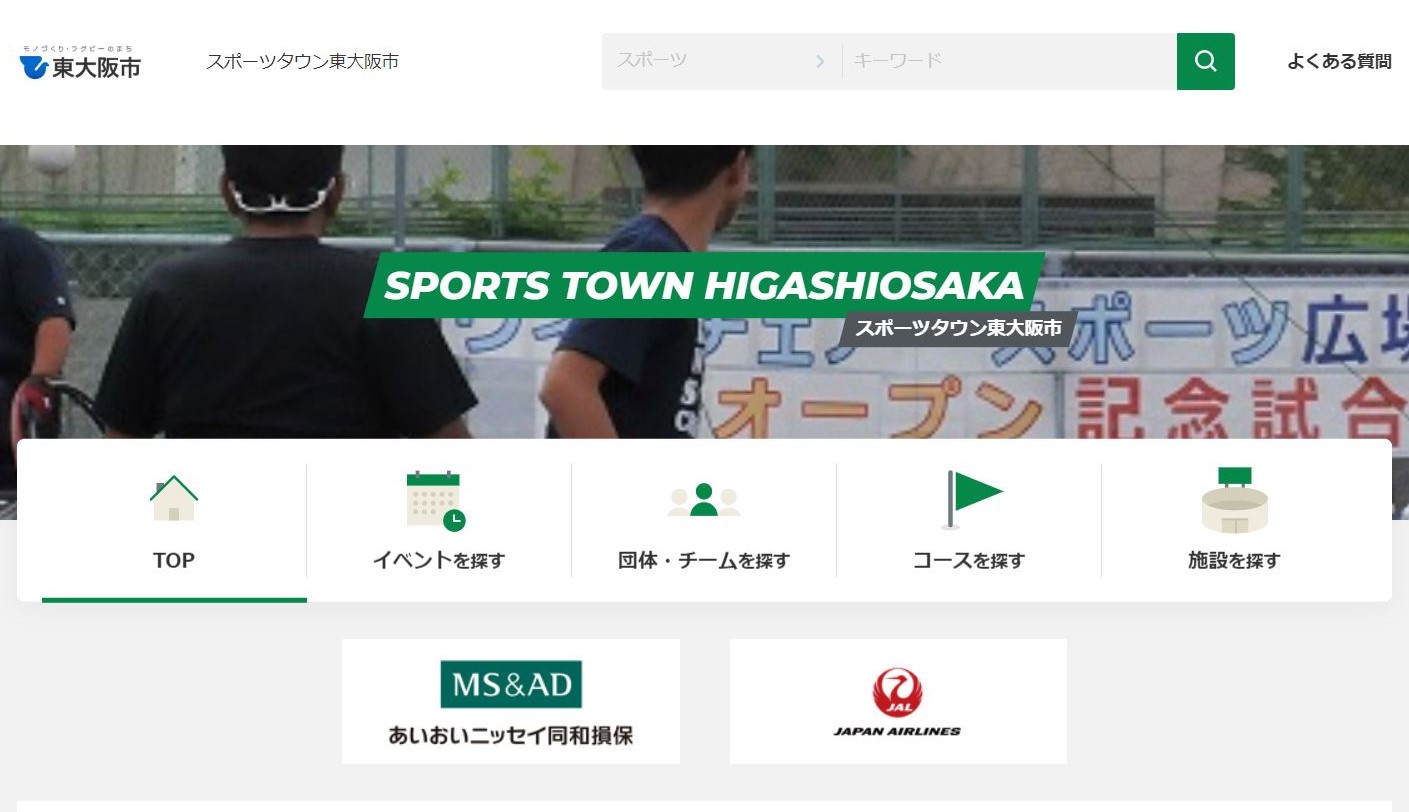 東大阪市のスポーツ情報を集約したウェブサイト「スポーツタウン東大阪市」が公開されました。市内の「イベント」「施設」「コース」「チーム」などの情報を閲覧・検索できます。
