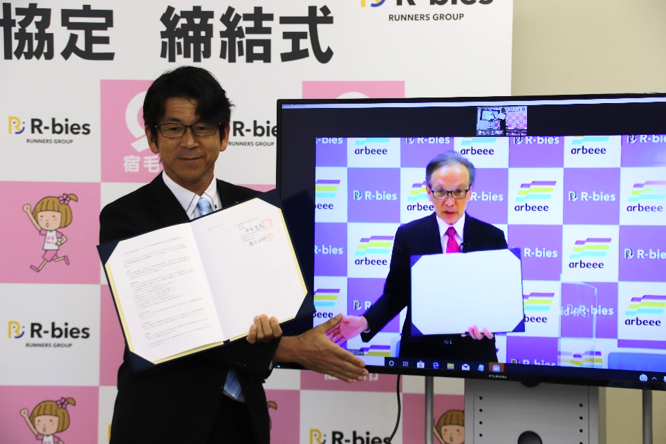 (左:宿毛市 中平 富宏 市長、右:株式会社アールビーズ 橋本治朗代表取締役)